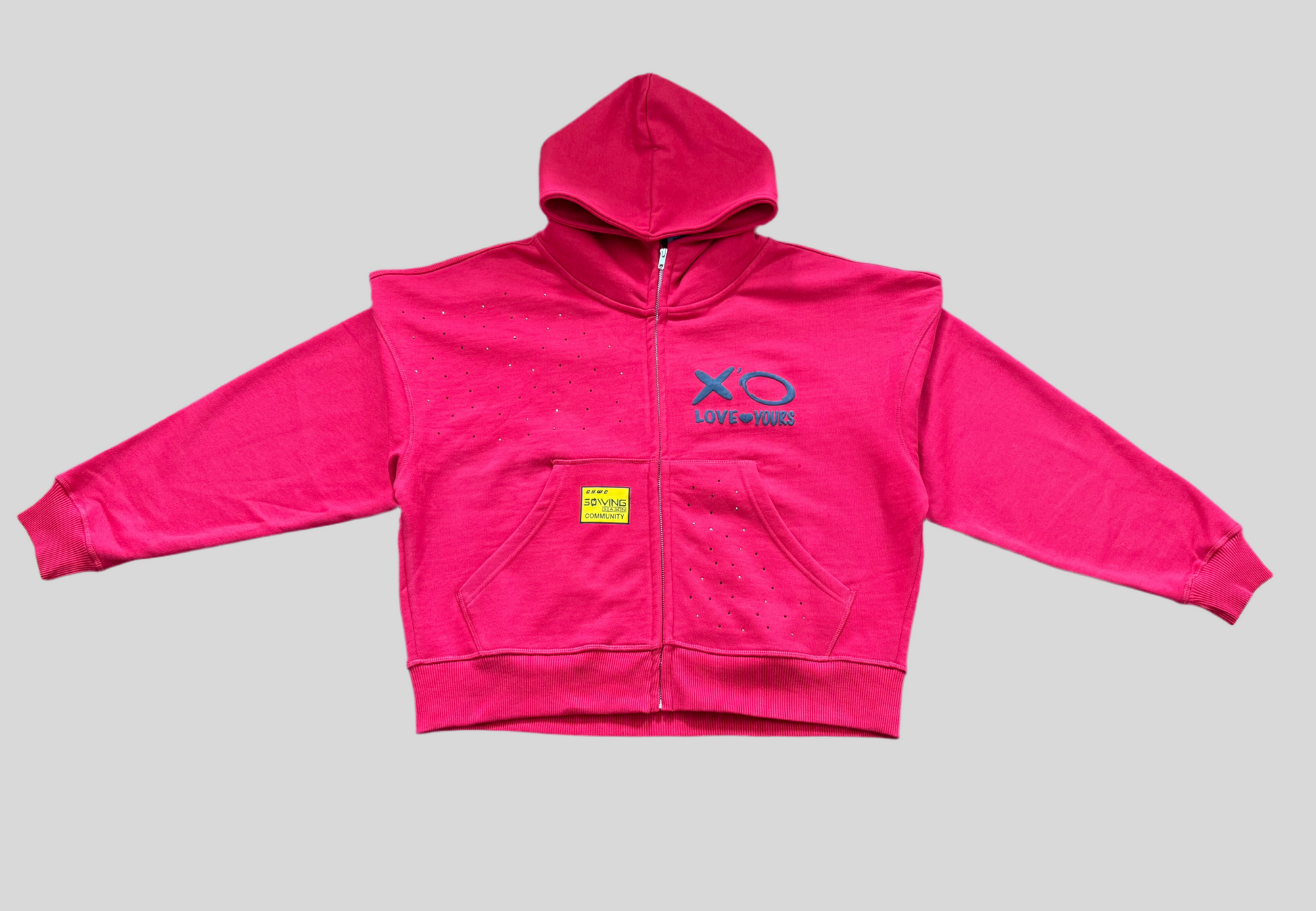 Red Zip Up Hoodie / Cropped Body / Drop Shoulders